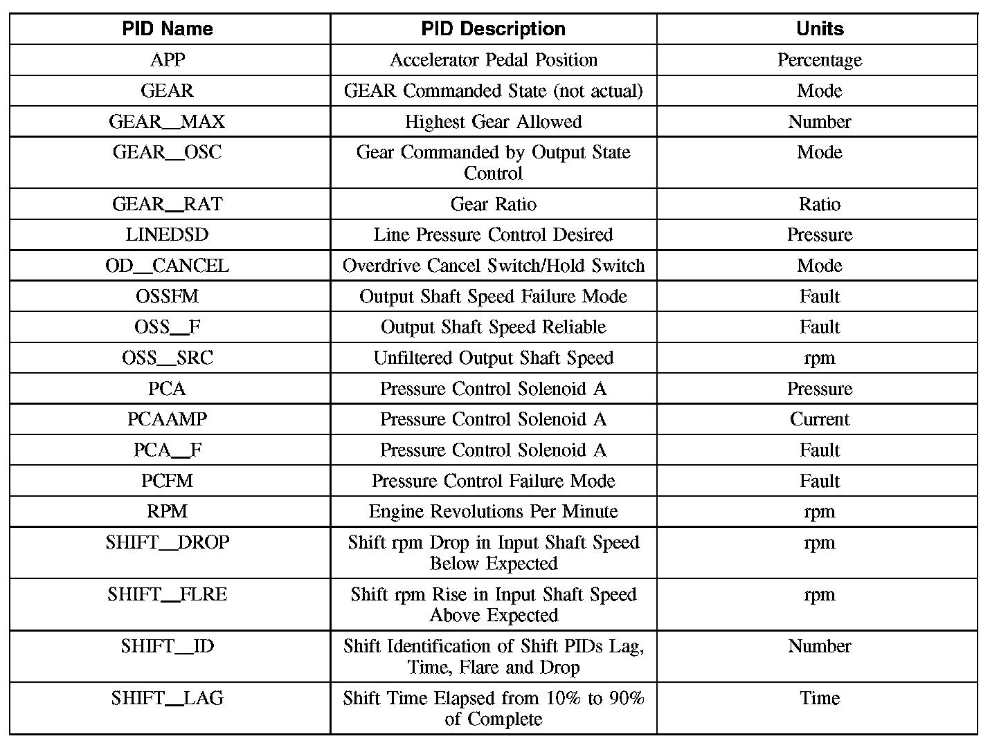 ^ GEAR - Directs the PCM to up-shift or down-shift