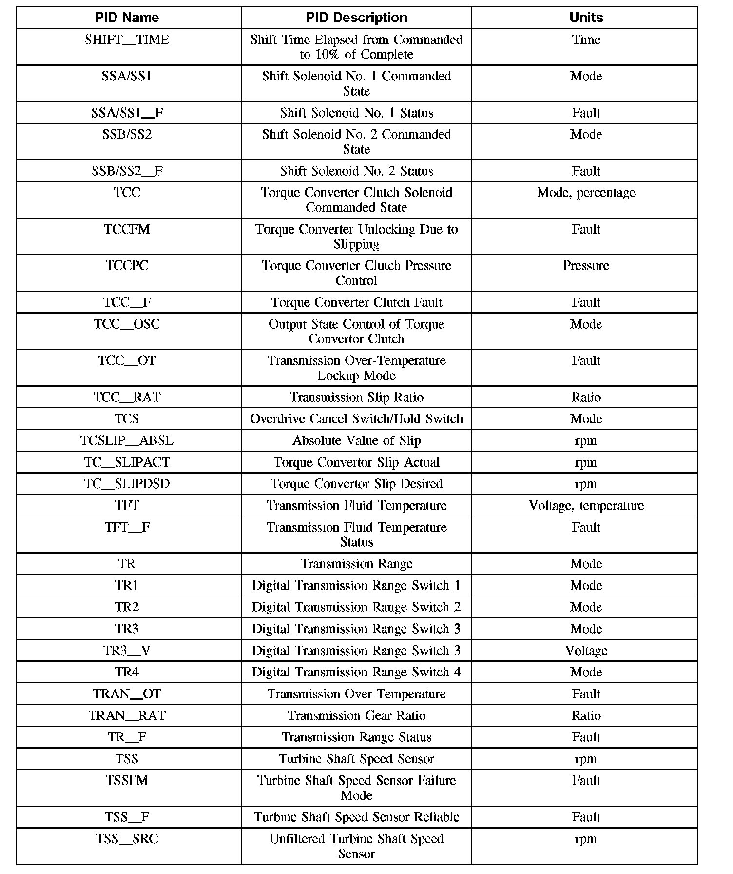 ^ TCC - Directs PCM to command the Torque Converter Solenoid from 0% duty cycle to 100% duty cycle