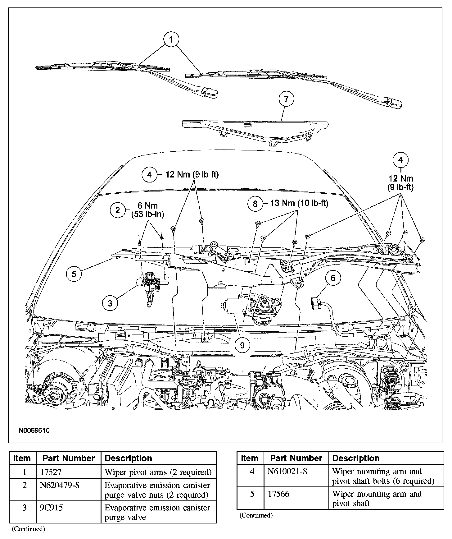 2. NOTE: If the wiper motor is inoperative, manually rotate the wiper motor linkage until the wipers reach their highest point on the windshield.