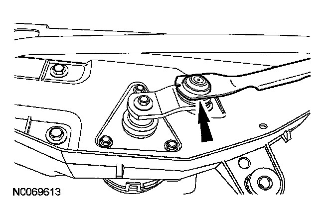 3. CAUTION: Do not remove the wiper motor linkage arm from the wiper motor assembly. If the arm is removed, the wiper arms may not park in the correct location.