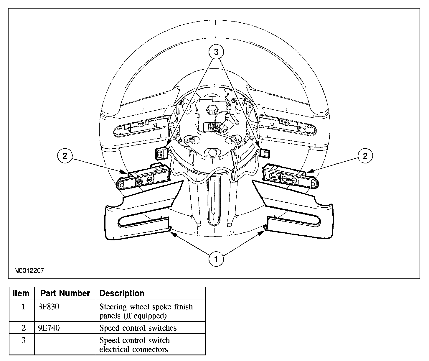 3. NOTE: Using a small, flat-bladed screwdriver, gently pry up the speed control switches from the steering wheel, beginning at the outer edge. Use care not to damage the steering wheel.