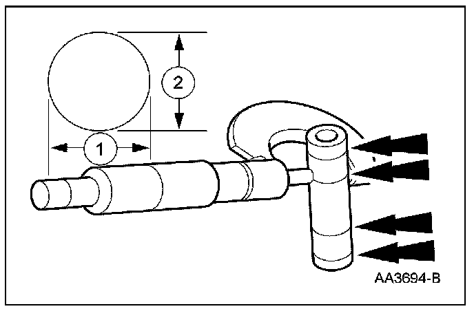 1. Measure the piston diameter 90 degrees from the piston pin and 42 mm (1.65 in) down from the top of the piston at the point indicated.