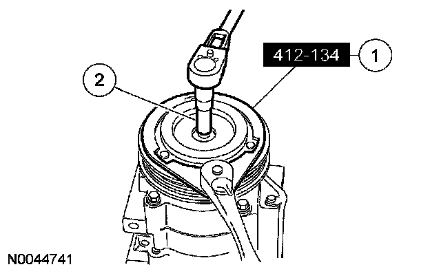3. CAUTION: Do not use air tools. Damage to the A/C clutch field coil or A/C compressor may result.
