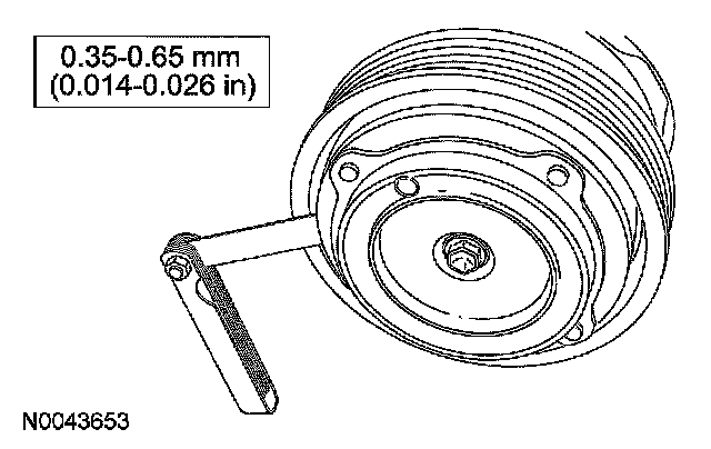 8. Measure and adjust the clutch air gap by adding or removing A/C clutch disc and hub spacers.