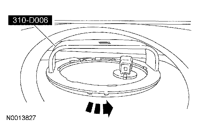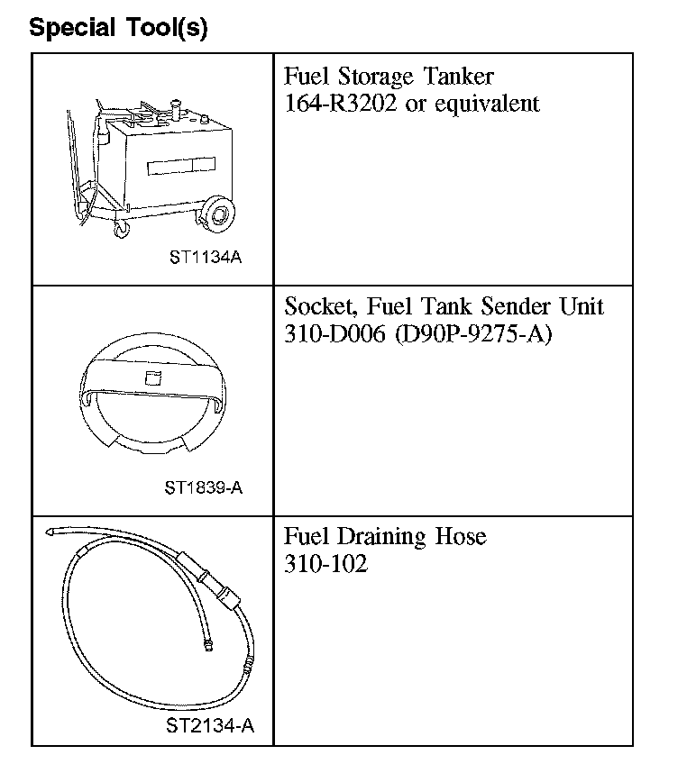 - Attach the fuel storage tanker to the special tool and remove as much fuel as possible from the fuel tank and filler pipe, lowering the fuel level below the fuel pump (FP) module mounting flange.