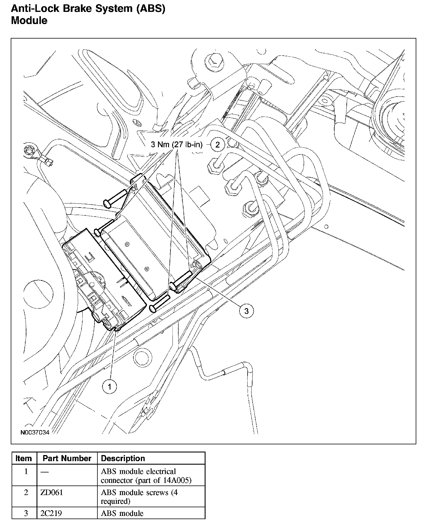 ^ To install, tighten to 3 Nm (27 lb-in) in the sequence shown.
