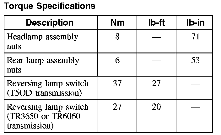 Torque Specifications: