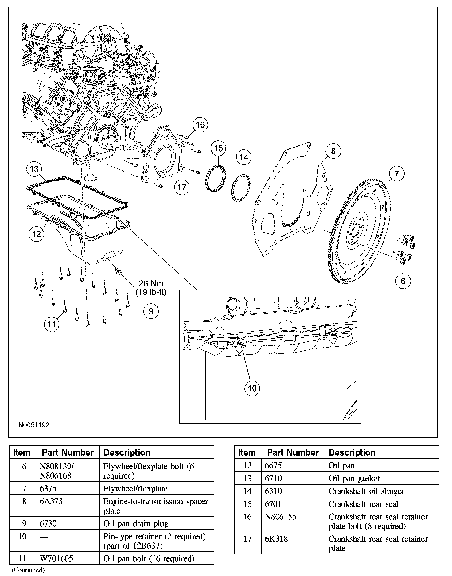 FlywheelLower End Components - Exploded View, Flexplate, Flywheel and Crankshaft Rear Seal (Part 1):