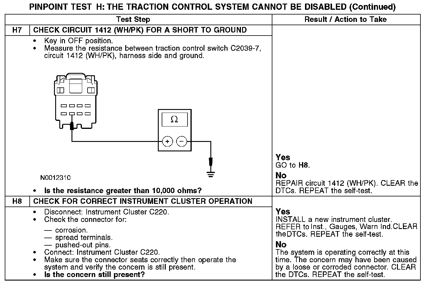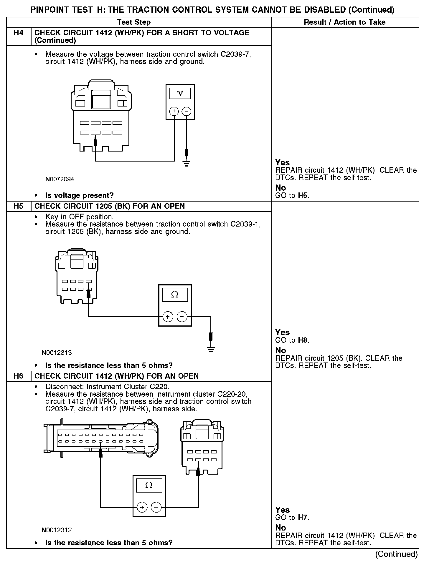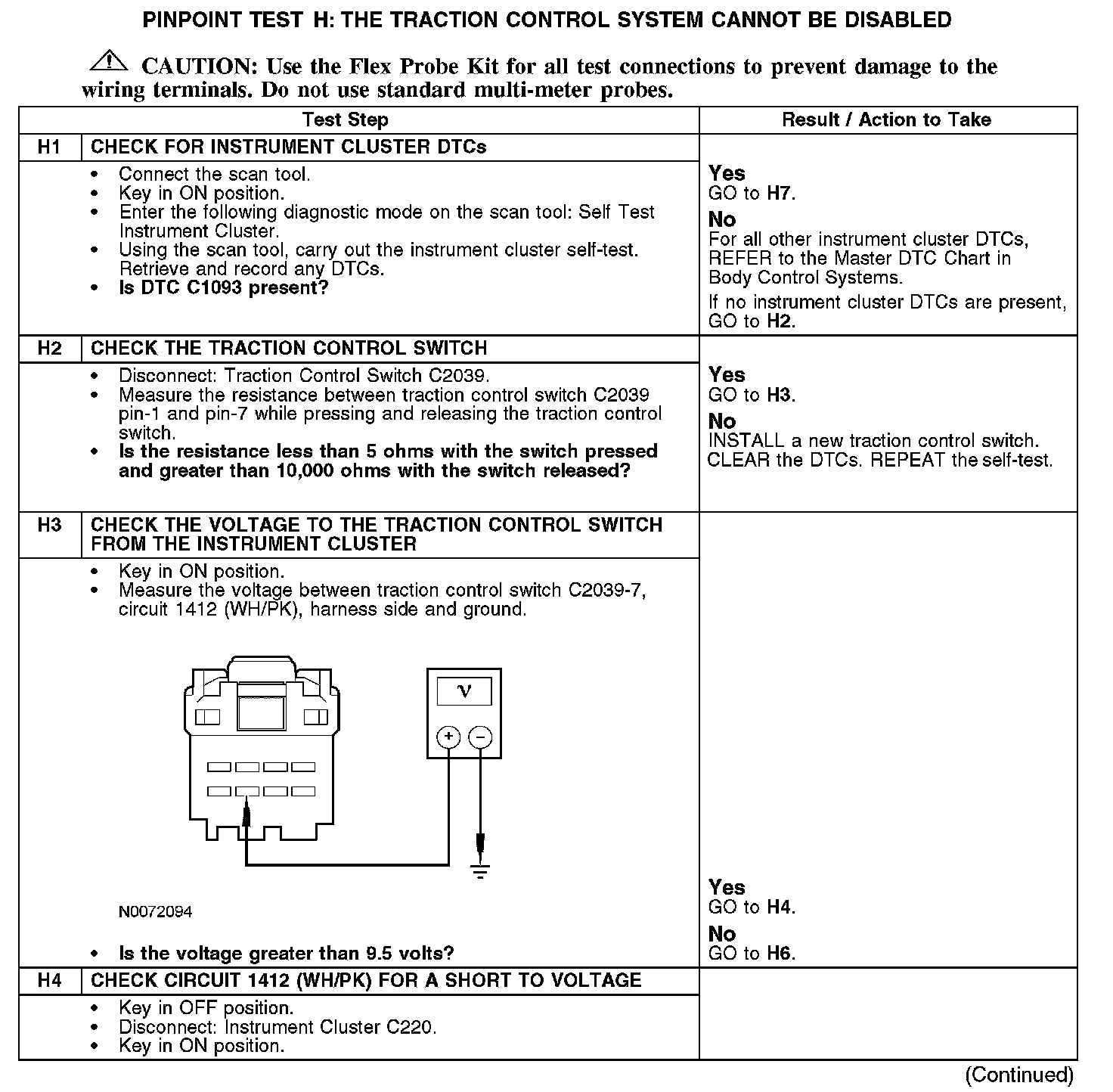 Pinpoint Test H: The Traction Control System Cannot be DisabledRefer to Vehicle/Diagrams, Vehicle Dynamic Systems for schematic and connector information.