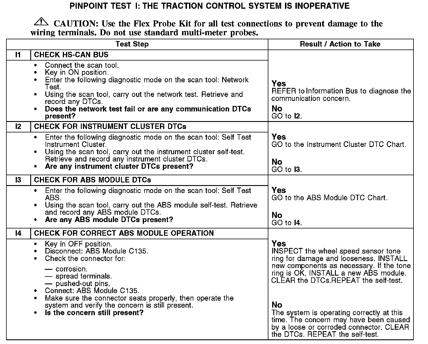 If the rear wheels begin to loose traction during acceleration, the ABS module will use the hydraulic control unit (HCU) to modulate brake fluid pressure to the rear brake calipers. At the same time, the ABS module sends a message to the PCM over the high-speed controller area network (HS-CAN) bus to modulate engine torque. Engine torque modulation is achieved by regulating fuel and spark to the cylinders. Once the rear wheels return to the desired speed, the ABS module stops modulating the brake fluid pressure and stops sending the message to the PCM.