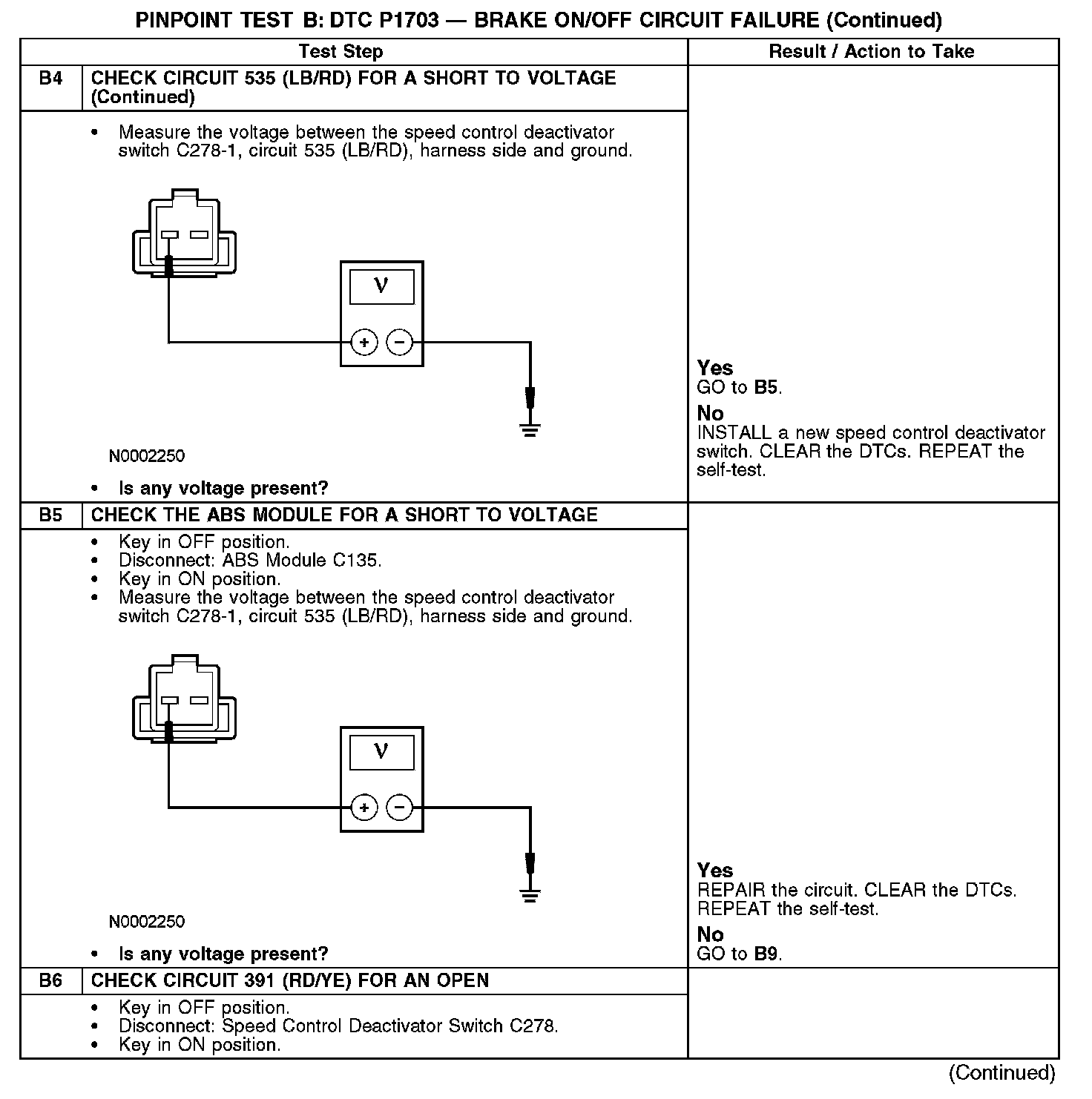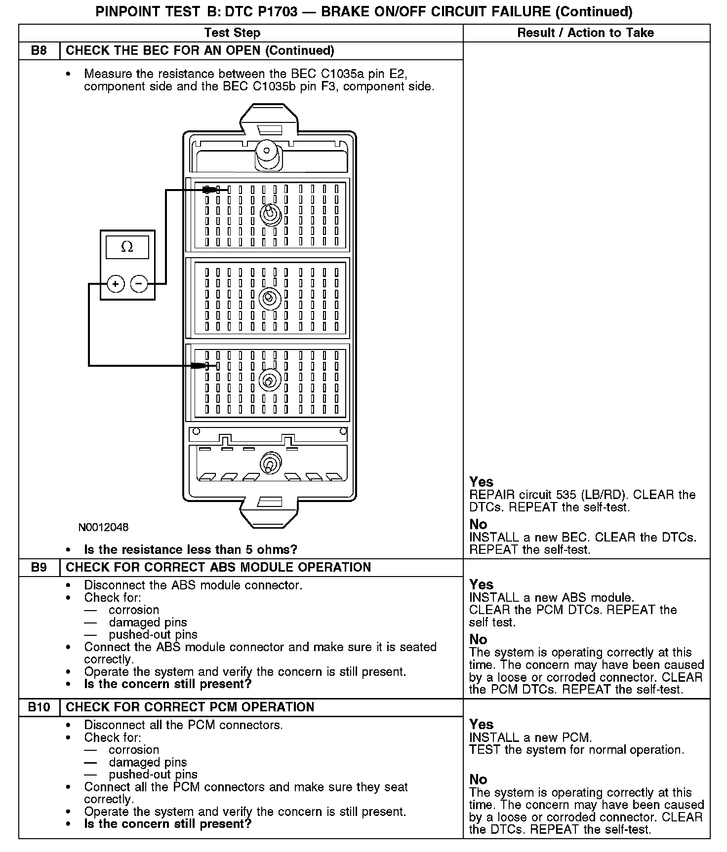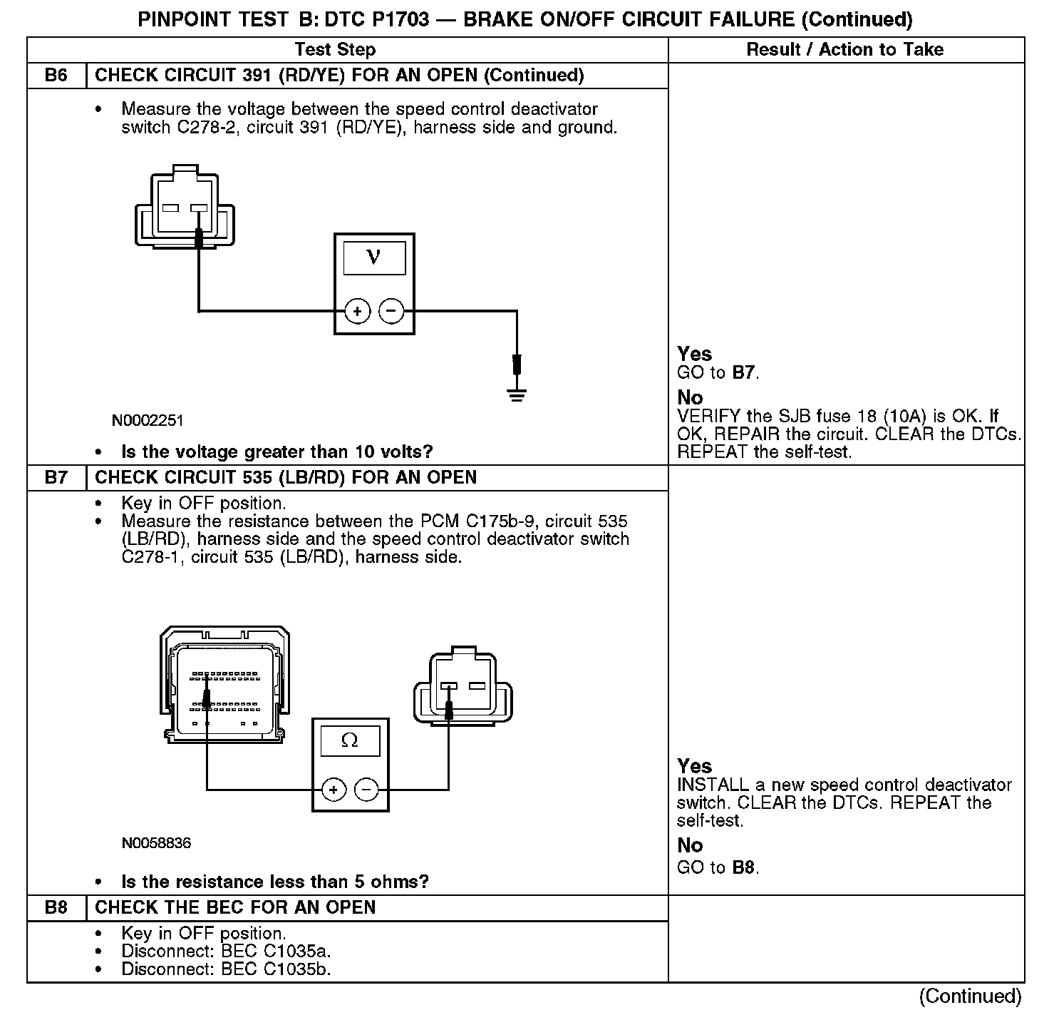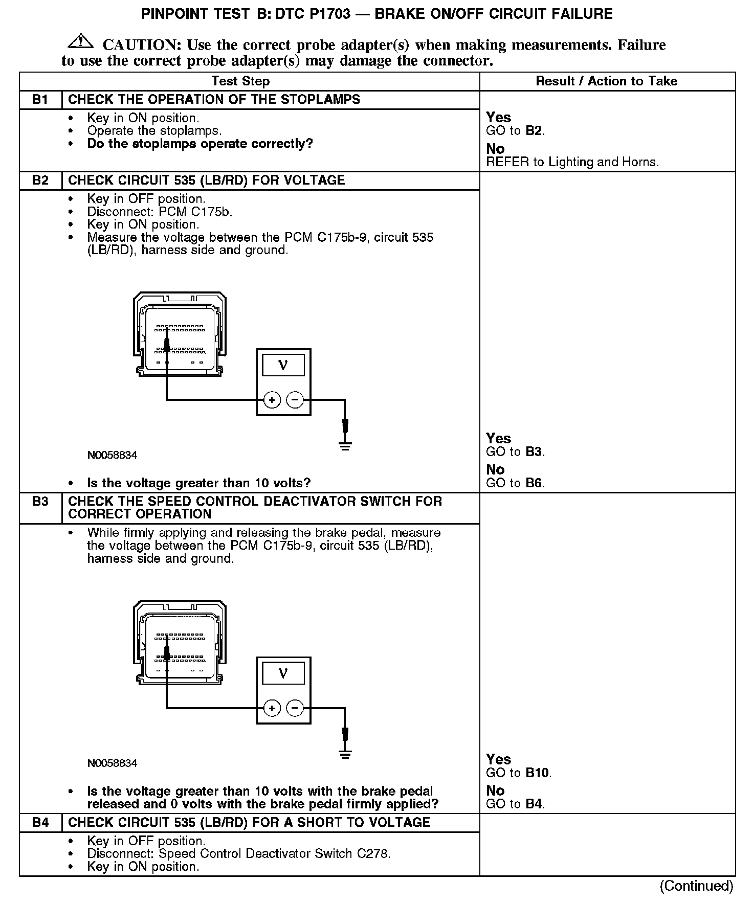 Test B: DTC P1703 - Brake On/Off Circuit Failure