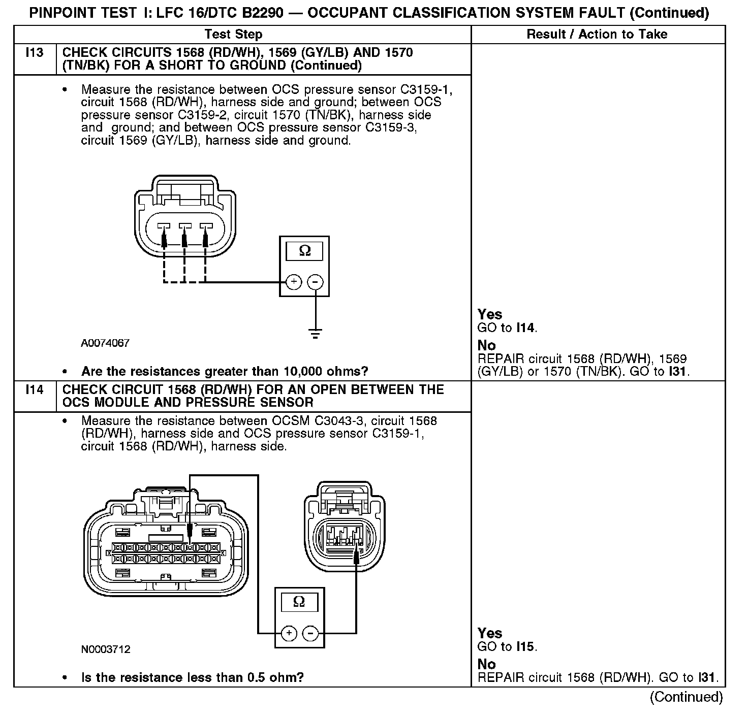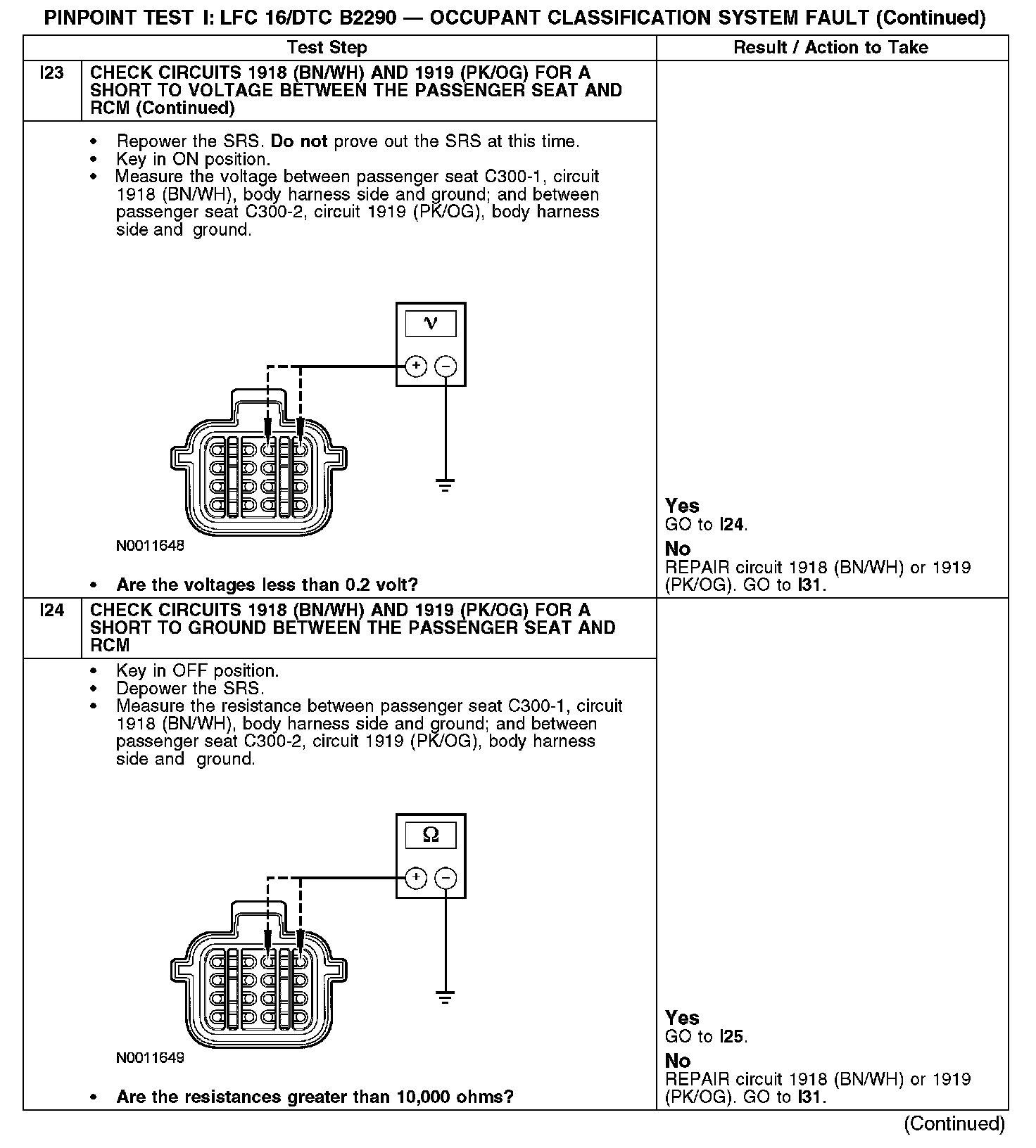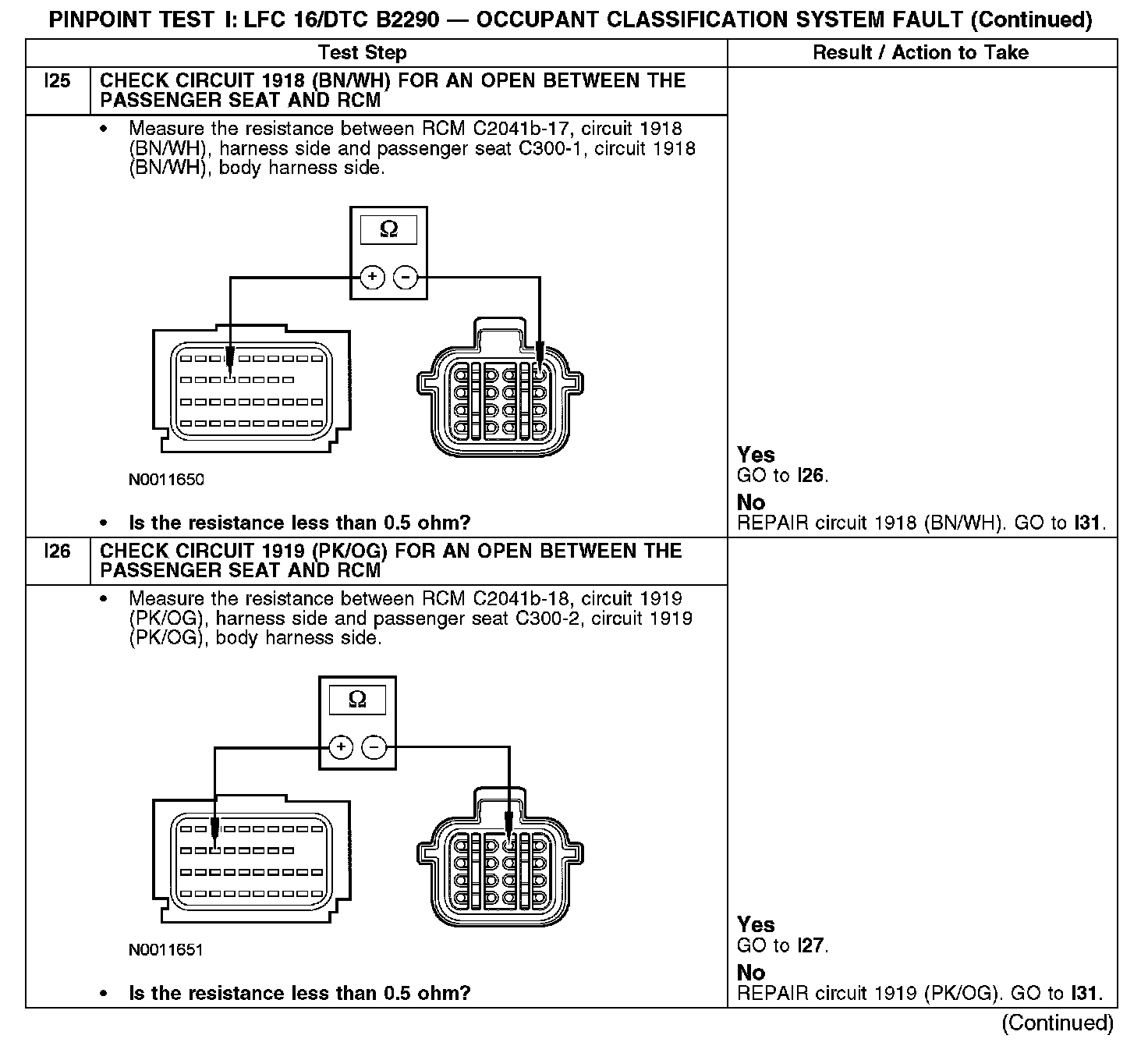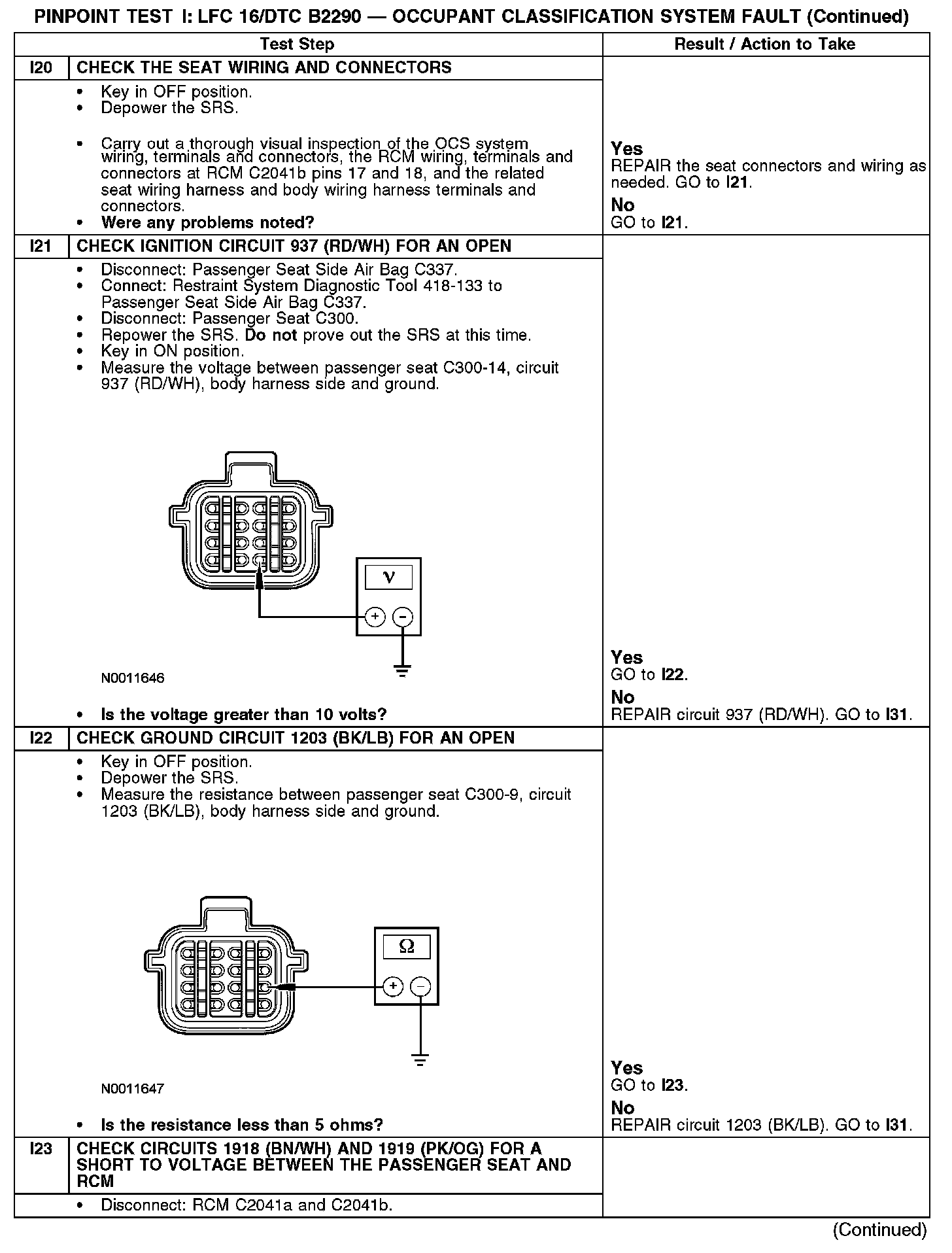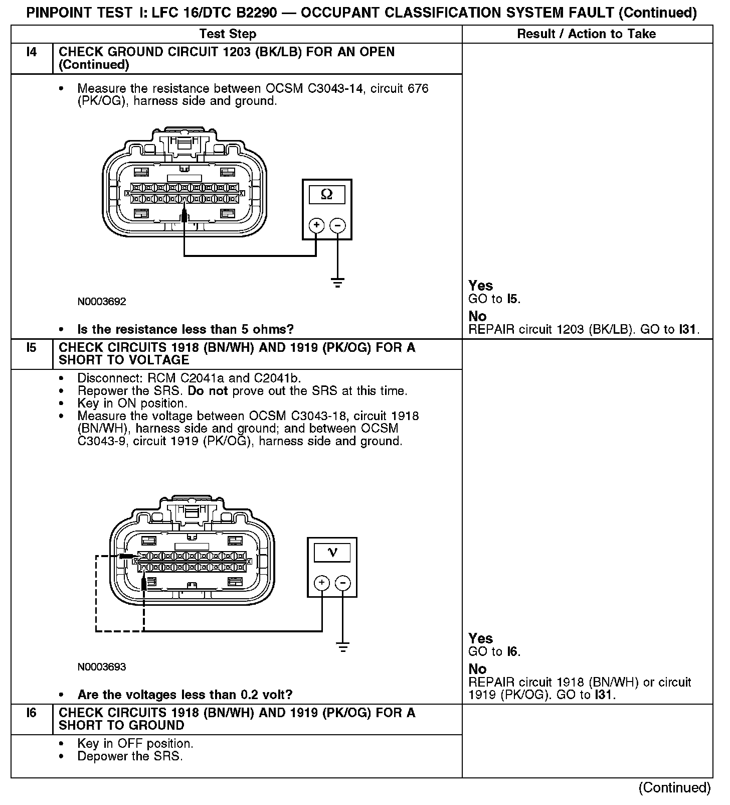 PINPOINT TEST I: LFC 16/DTC B2290 - OCCUPANT CLASSIFICATION SYSTEM FAULTNOTE: LFC 16 is shared between DTC B2290 and DTC B2909.