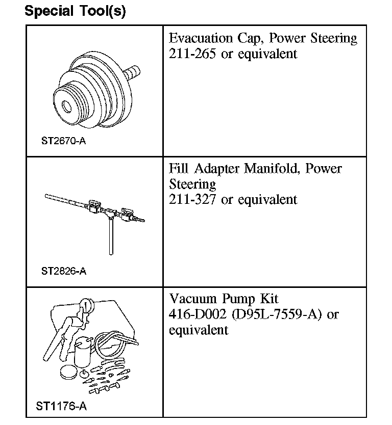 1. CAUTION: If the air is not purged from the power steering system correctly, power steering pump failure may result. The condition may occur on pre-delivery vehicles with evidence of aerated fluid or on vehicles that have had steering component repairs.