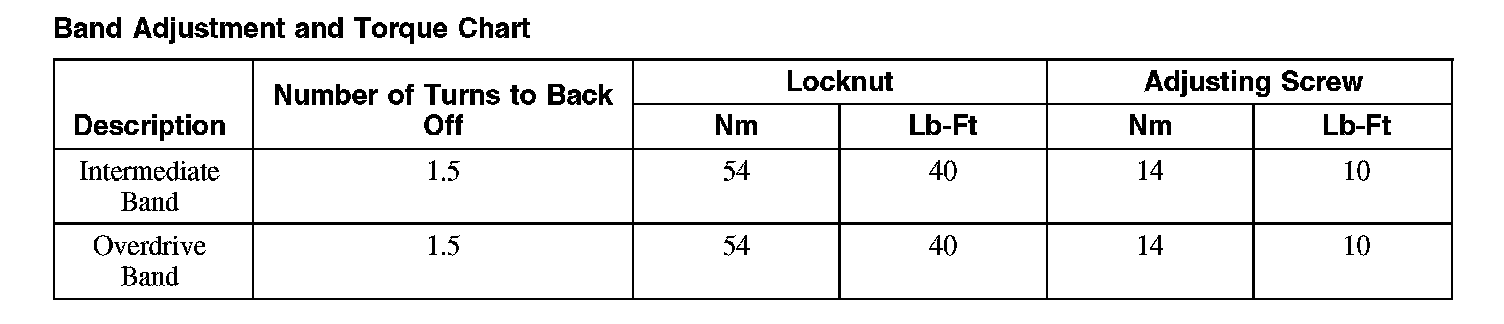 Band Adjustment and Torque Chart
