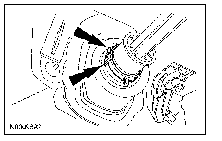 5. CAUTION: Make sure that the intermediate shaft boot bearing clamp is retained in the open position when removing and installing the clamp, boot bearing or boot assembly or damage to the boot may occur.