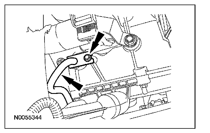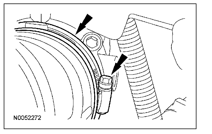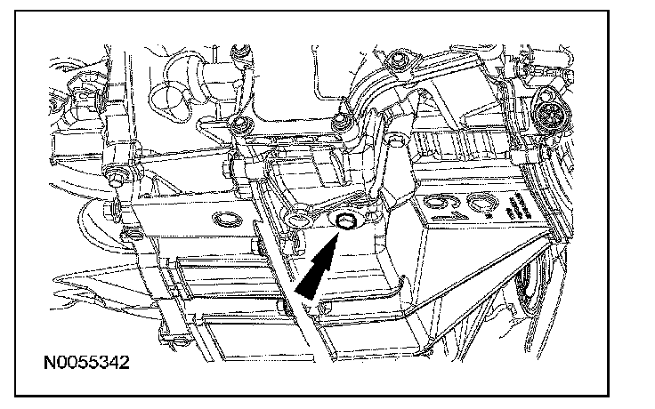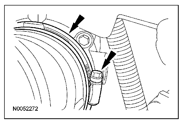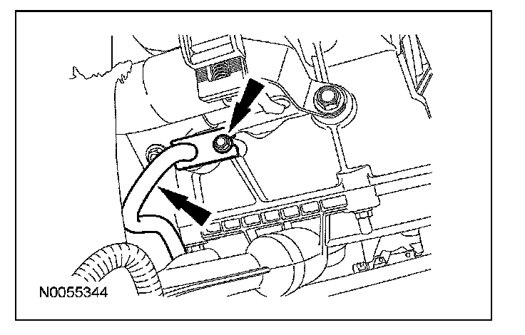 12. Remove and discard the transmission fluid cooler tube bolt and remove the transmission fluid cooler tube.