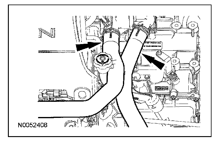 8. Remove the coolant hoses from the transmission fluid filler tube.