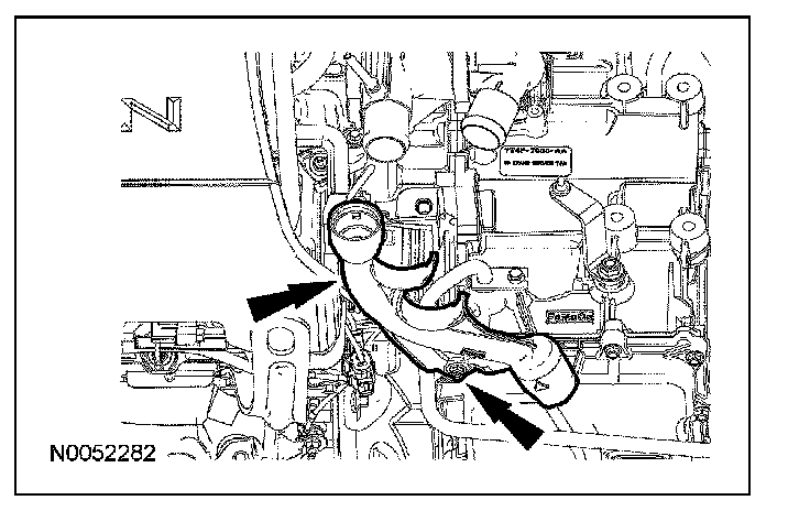 11. Route the coolant hoses in the transmission fluid filler tube.
