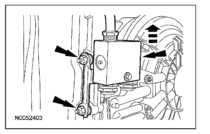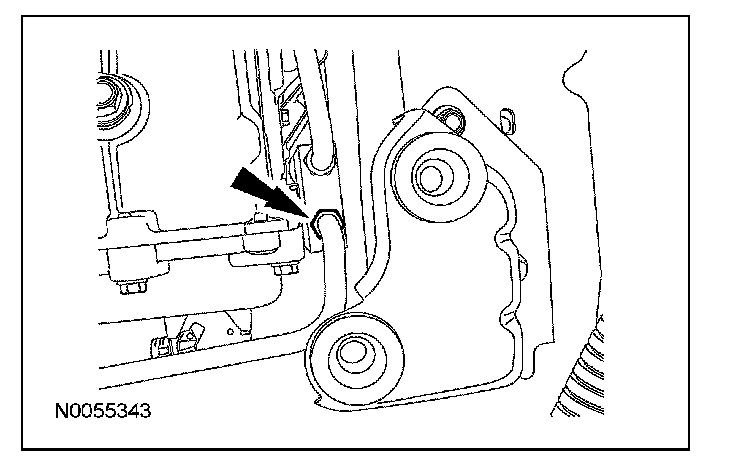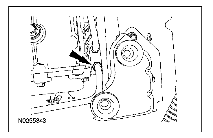 10. Remove the nut, rotate the transmission fluid filler tube counterclockwise 90 degrees and remove the transmission fluid filler tube.