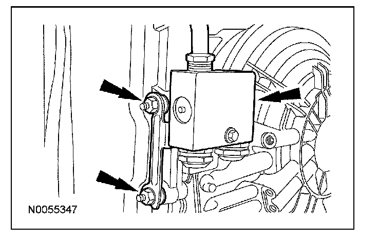 15. Remove the 2 nuts, pull the transmission fluid cooler thermal bypass valve straight up and position it aside.