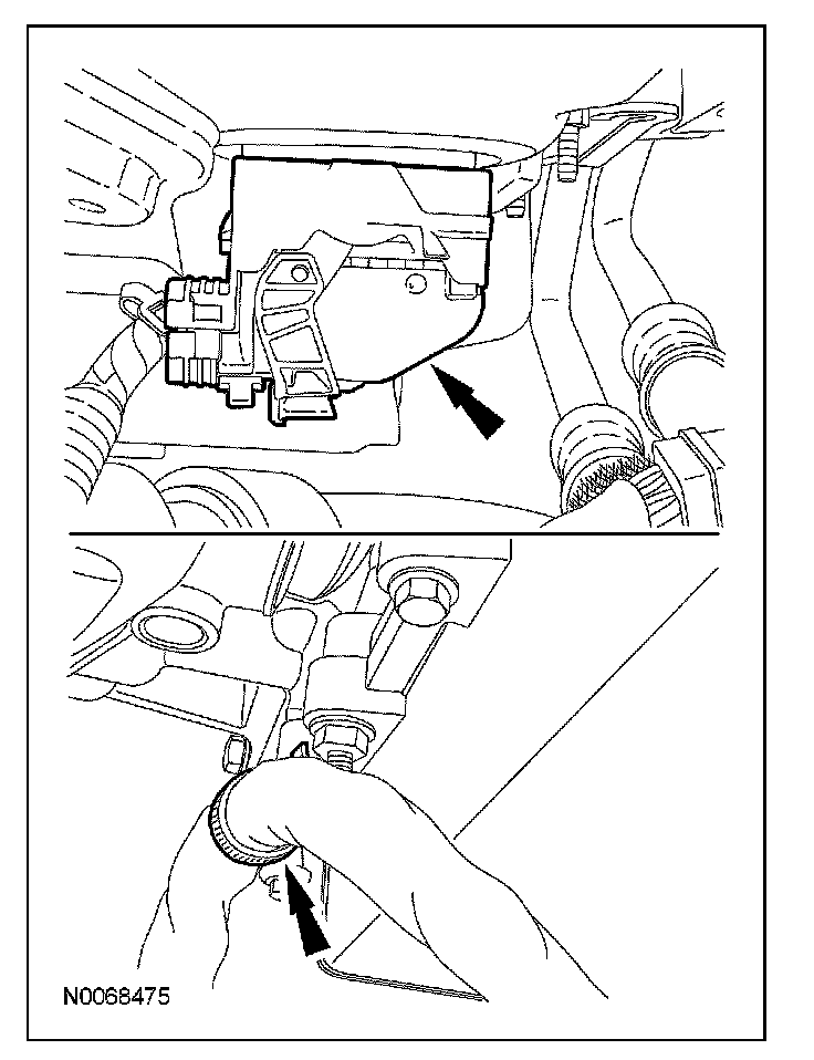 13. Inspect the transaxle case to make sure that the transmission fluid cooler tube seal and backing ring were removed with the transmission fluid cooler tube and are not stuck in the transaxle case. If the transmission fluid cooler tube seal or backing ring are stuck in the transaxle case, remove the seal and backing ring.