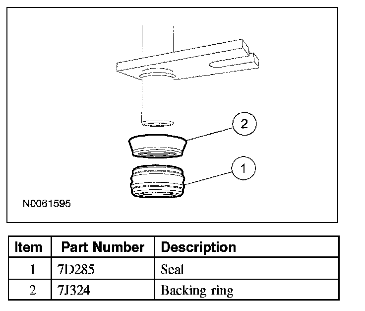 6. Inspect the transmission fluid cooler tube backing ring and seal for damage and install a new backing ring or seal if necessary. Lubricate the transmission fluid cooler tube seal with clean automatic transmission fluid and install the backing ring and seal on the transmission fluid cooler tube.