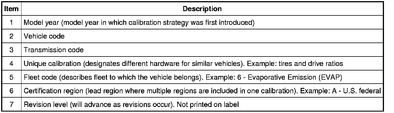 NOTE: Powertrain calibration information is limited to a maximum of 5 characters per line on the VC label. Calibration identification consisting of more than 5 characters will wrap to the second line on the VC label.