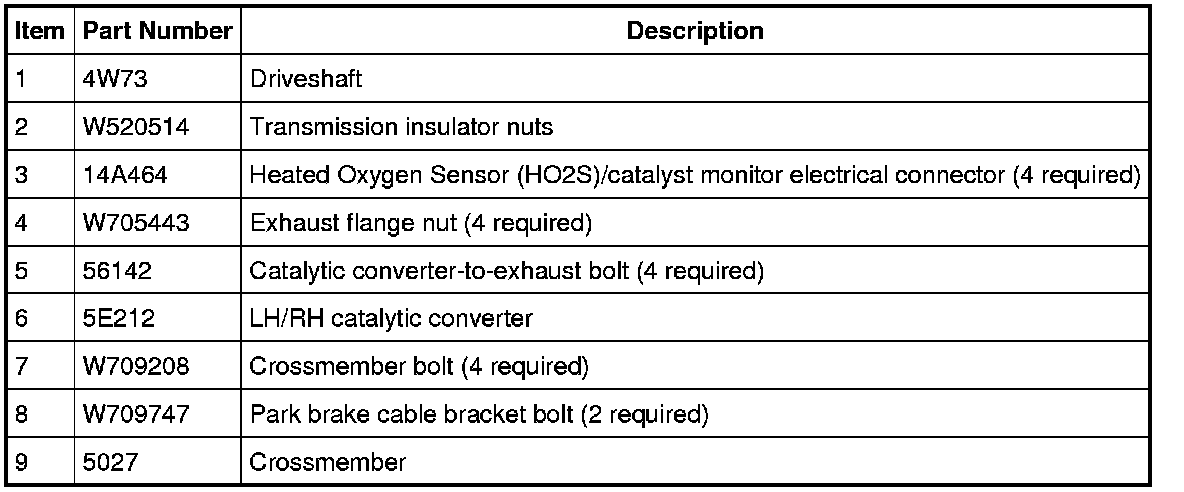 9. Remove the LH catalytic converter-to-exhaust bolts.