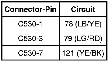 G8 CHECK CIRCUITS 78 (LB/YE), 79 (LG/RD) AND 121 (YE/BK) FOR AN OPEN