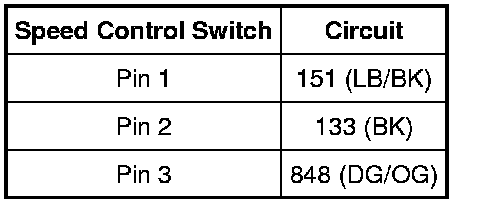 - Disconnect: Speed Control Switch(es).