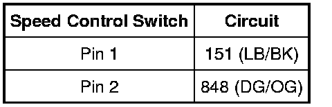 The PCM sends a signal through circuit 151 (LB/BK) to the speed control switches, which passes through the clockspring. The return signal is sent through circuit 848 (DG/OG) and the clockspring.