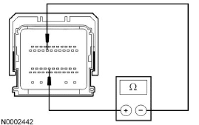 - Measure the resistance between the PCM C175b-19, circuit 151 (LB/BK), harness side and the PCM C175b-30, circuit 848 (DG/OG), harness side.