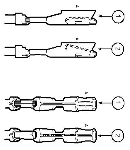 - Use heat shrinkable tubes marked with ES-1 (16-22 GA) or ES-2 (10-18 GA) to seat wire splice.