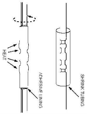 8. Use shielded heat gun to heat the repaired area until adhesive flows Out of both ends of heat shrink tubing.