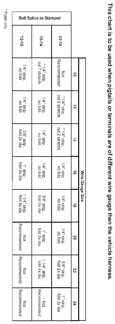 The given chart is to be used when pigtails or terminals are different wire gauge than the vehicle harness.