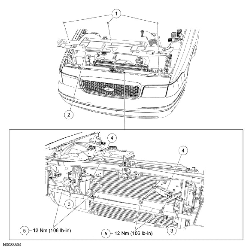 NOTE: Make sure the radiator core support and front impact severity sensor mating surfaces are clean and free of foreign material.