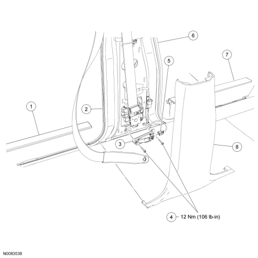 1. WARNING: Always tighten the fasteners of the restraints control module (RCM) and impact sensor (if equipped) to the specified torque. Failure to do so may result in incorrect restraint system operation, which increases the risk of personal injury or death in a crash.