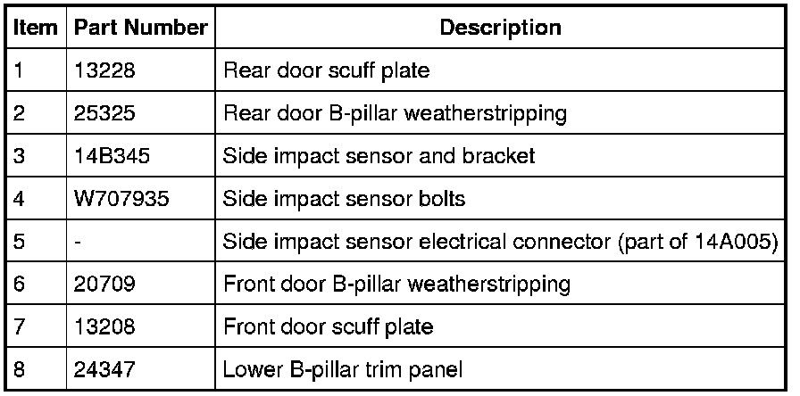 6. NOTE: The side impact sensor bolts must be removed in the sequence shown.