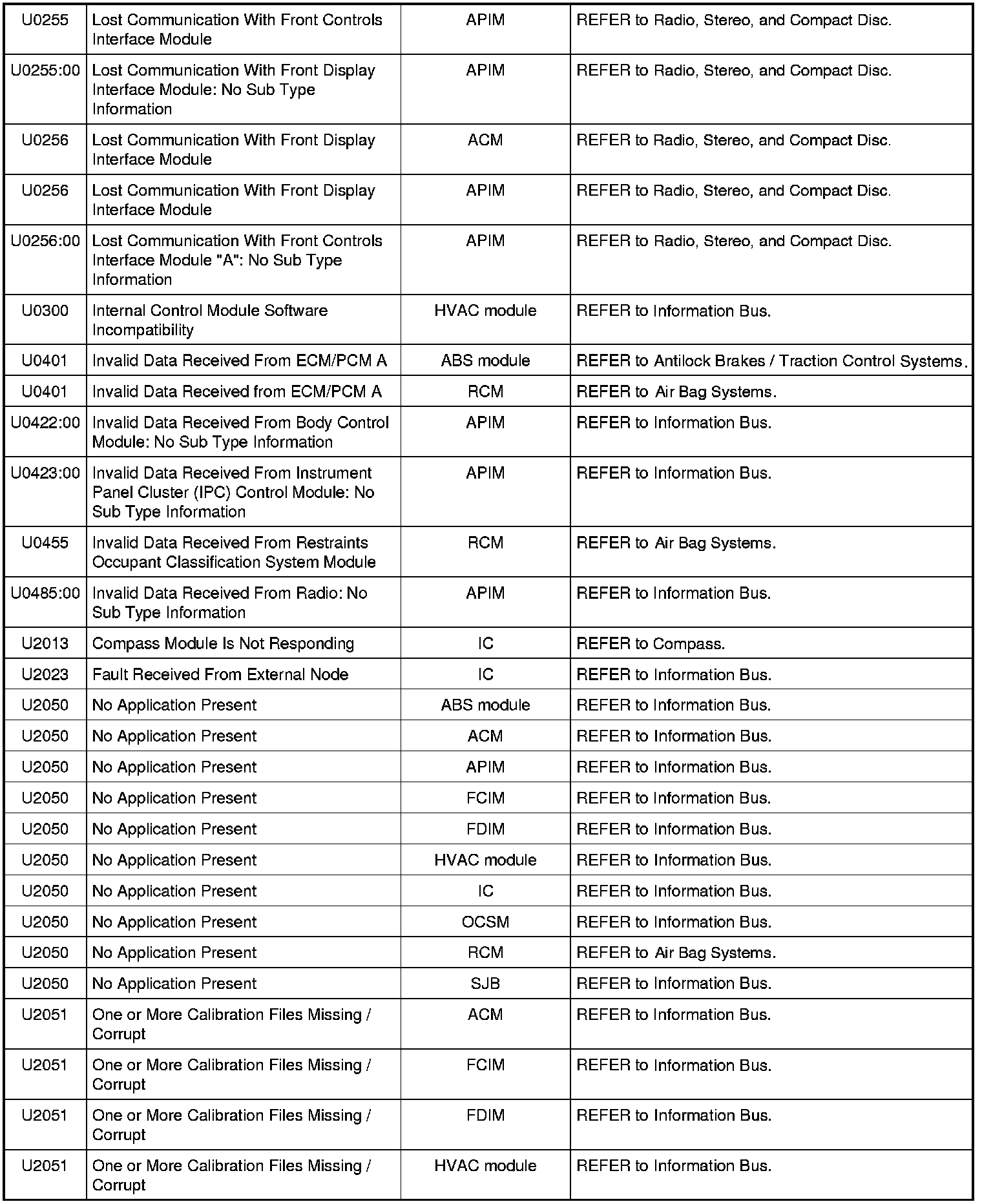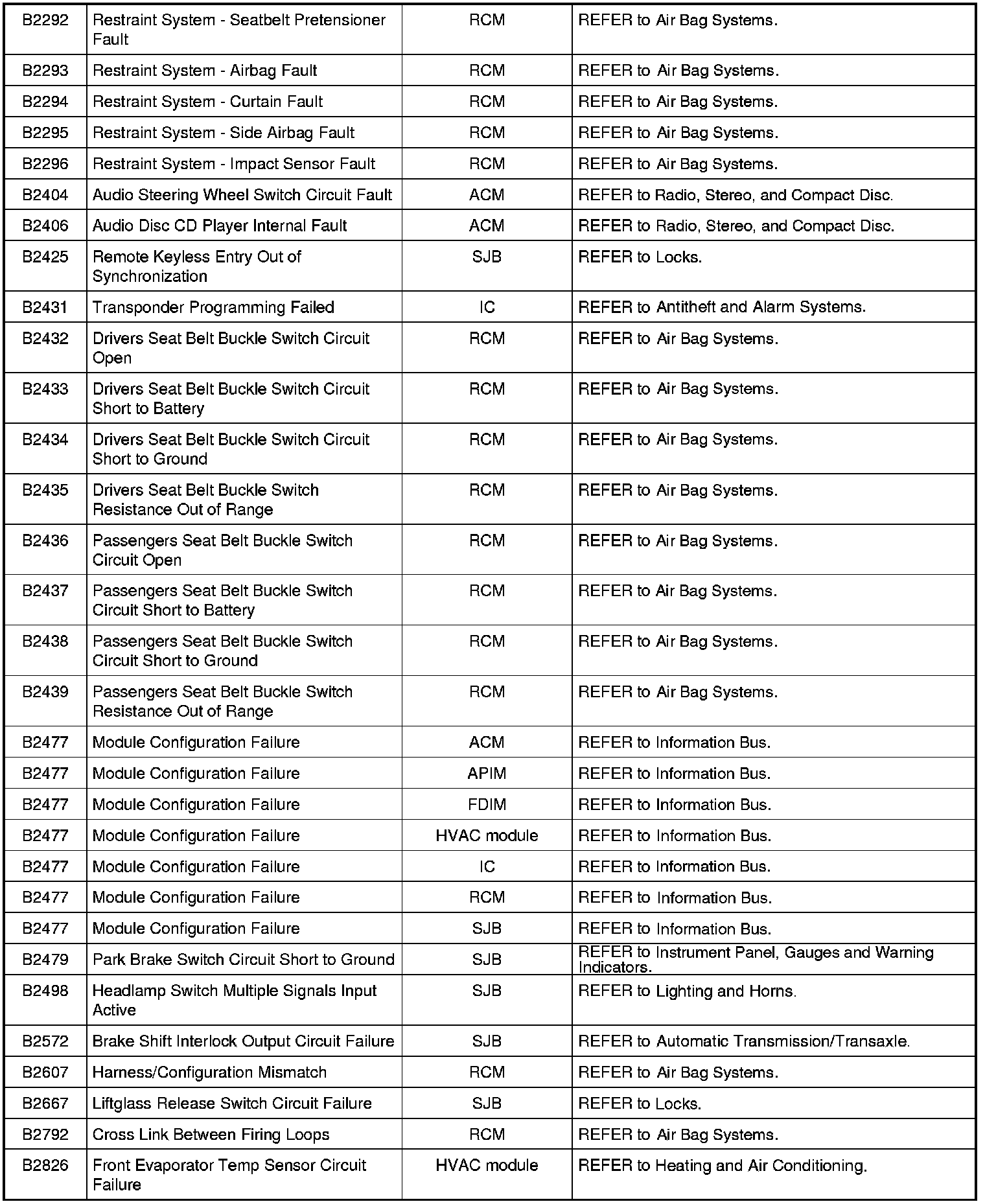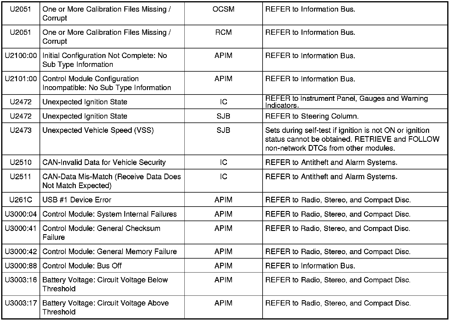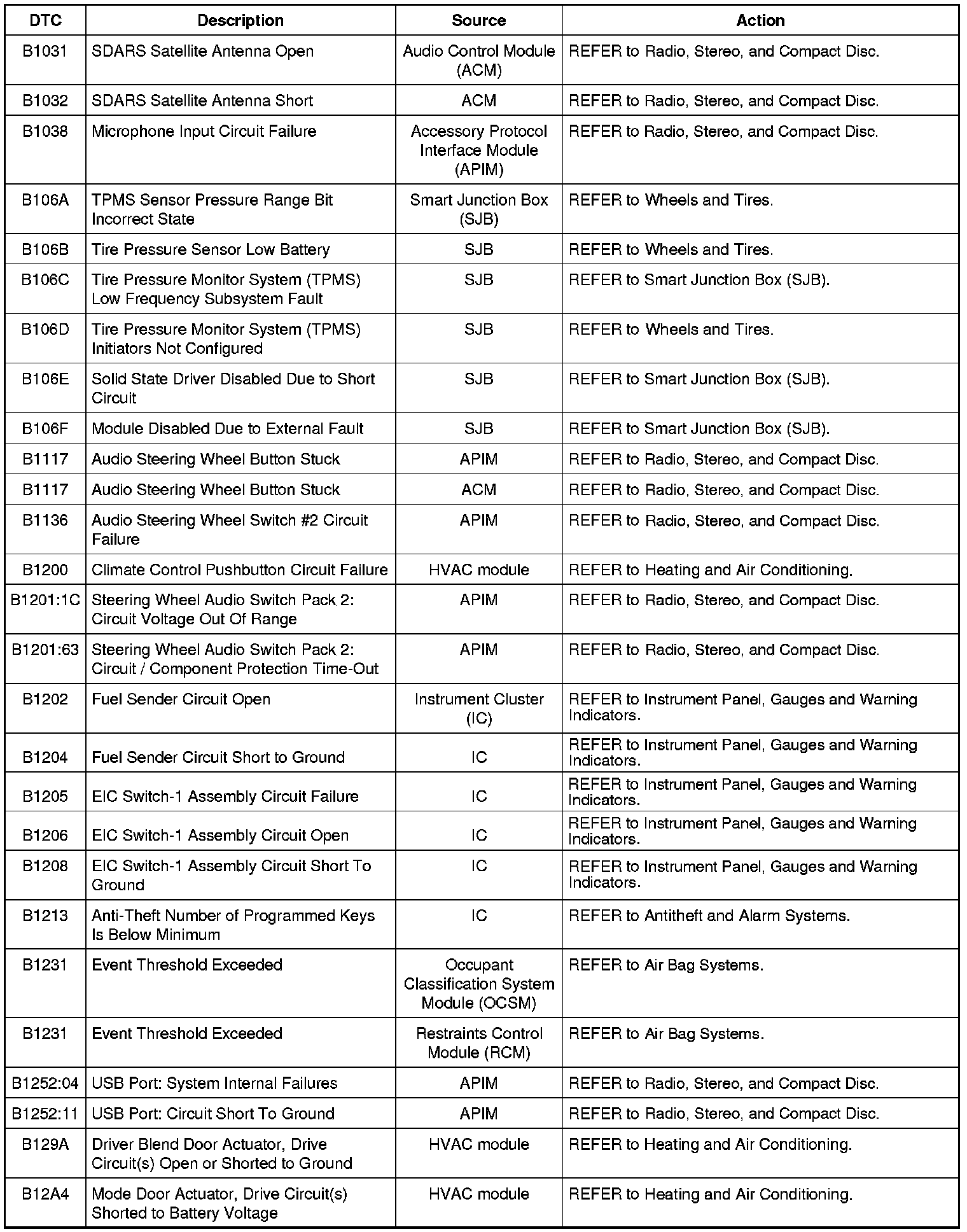 NOTE: Most powertrain (P-code) DTCs are diagnosed in the Computers and Control Systems Information. If the P-code retrieved is not listed below, refer to the Computers and Control Systems Information to continue diagnostics.