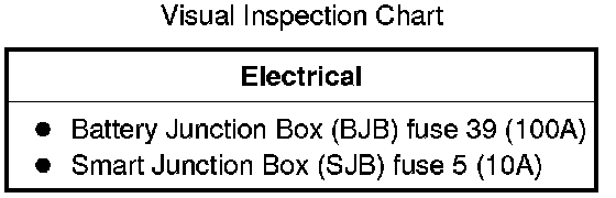 9. If the DTCs retrieved are related to the concern, go to DTC Charts. For all other DTCs, refer to Diagnostic Trouble Code (DTC) Chart. Smart Junction Box (SJB)
