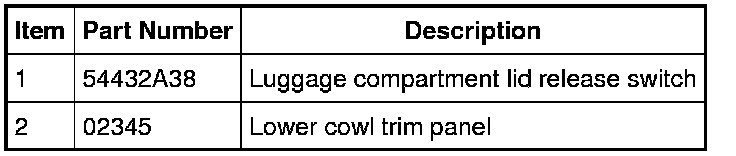 2. Press the tabs and remove the luggage compartment lid release switch.