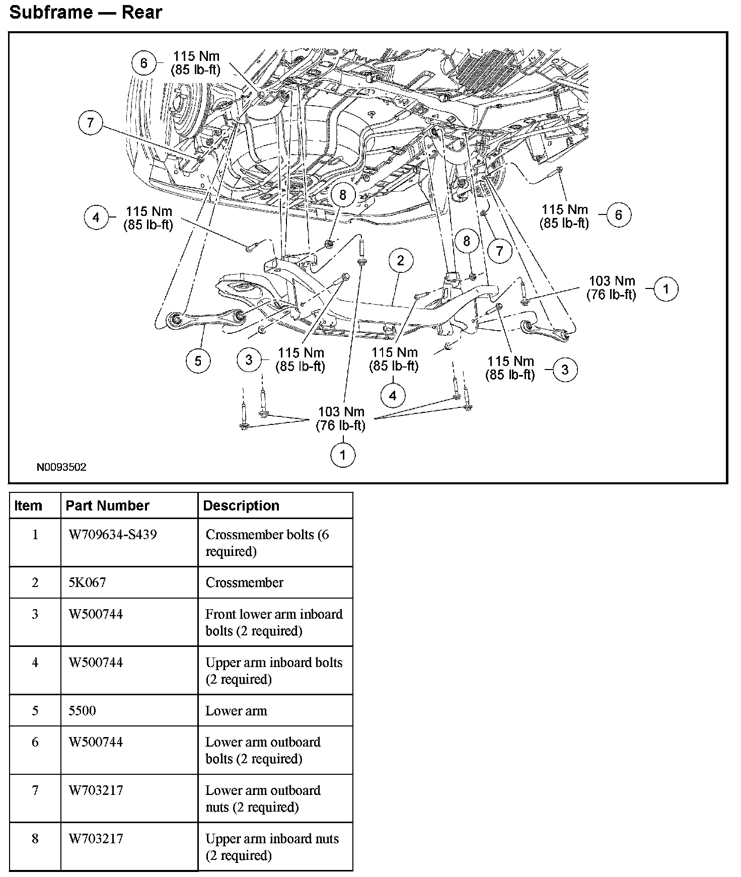 NOTICE: Suspension fasteners are critical parts because they affect performance of vital parts and systems and their failure can result in major service expense. A new part with the same part number must be installed if installation becomes necessary. Do not use a replacement part of lesser quality or substitute design. Torque values must be used as specified during reassembly to make sure of correct retention of these parts.