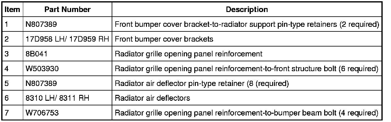10. Remove the pin-type retainers from the left and right air deflectors-to-radiator grille opening panel reinforcement and remove the air deflectors.