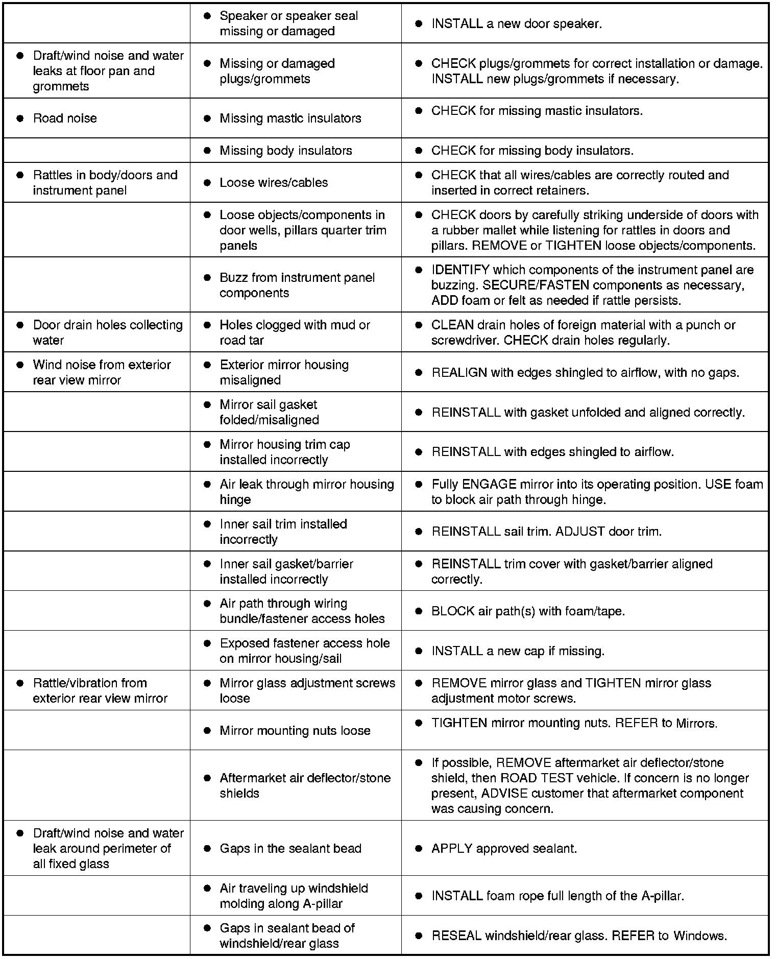 Symptom Chart - NVH (Part 2):