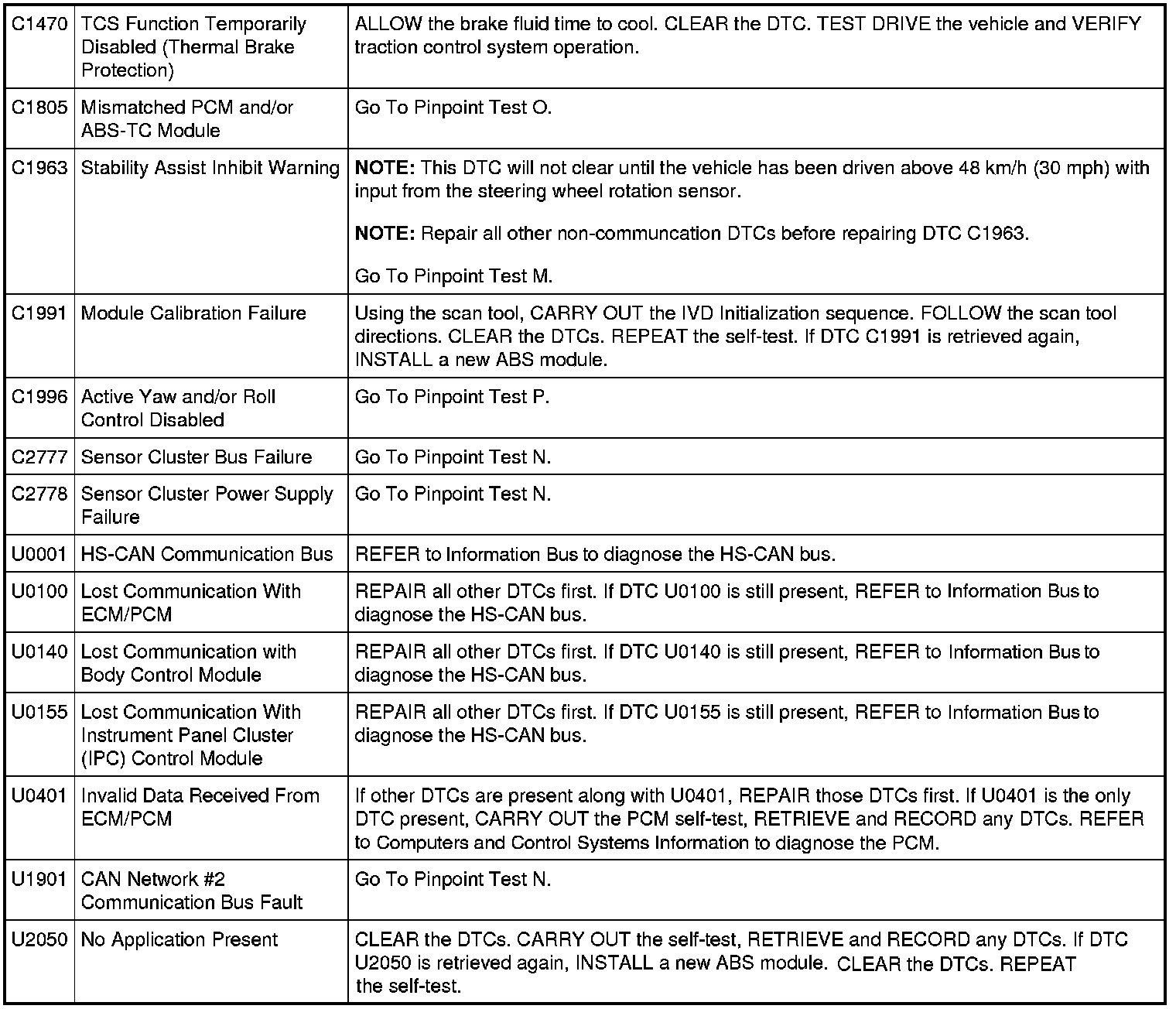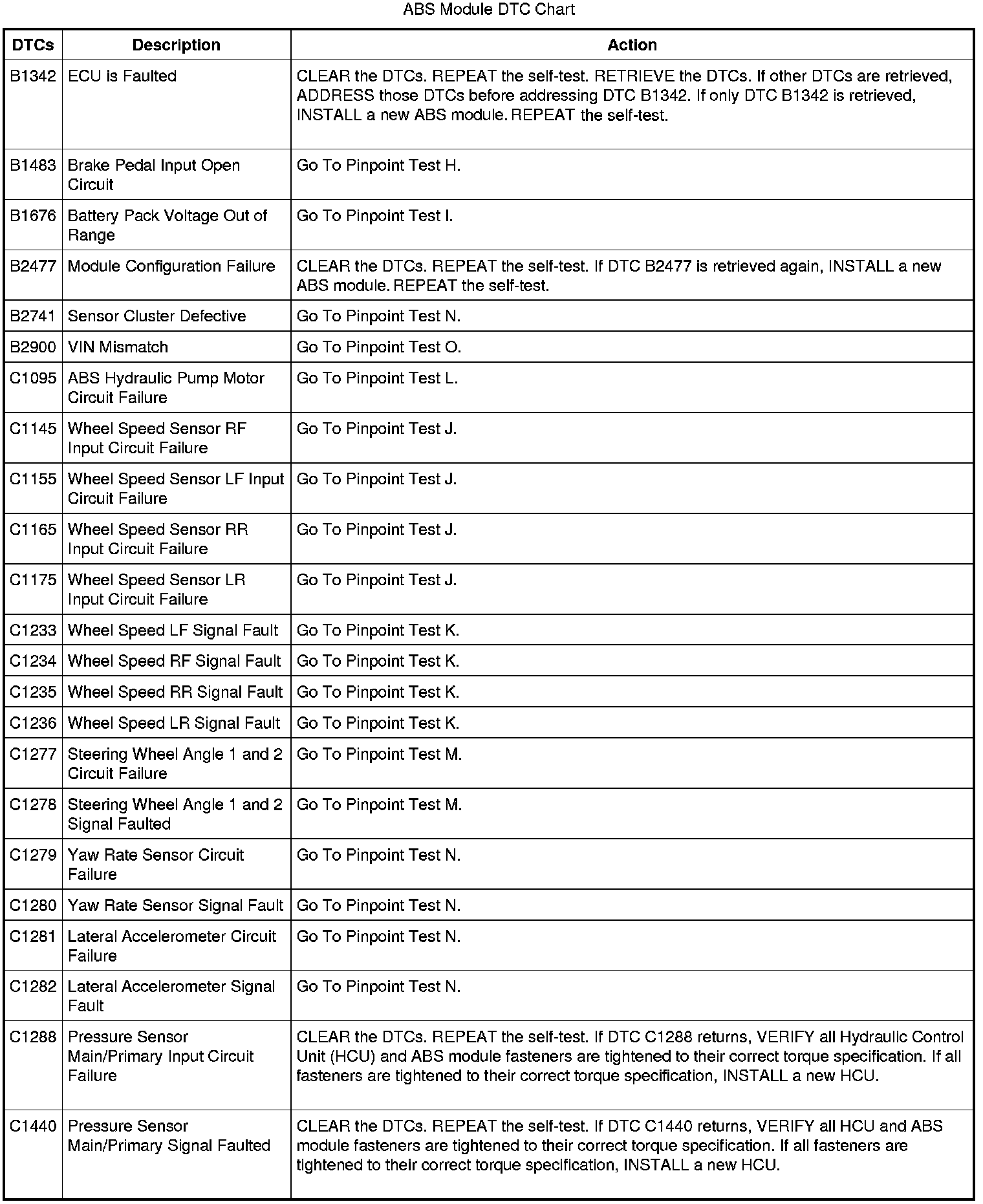 ABS Module DTC Chart