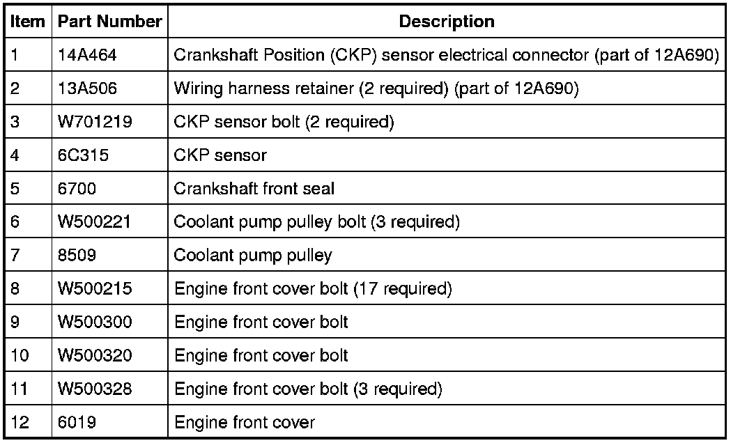 2. NOTE: The engine front cover must be installed and the bolts tightened within 4 minutes of applying the silicone gasket and sealant.