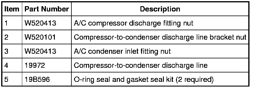 5. Remove the compressor-to-condenser discharge line bracket nut at the A/C compressor and disconnect the A/C compressor discharge fitting.