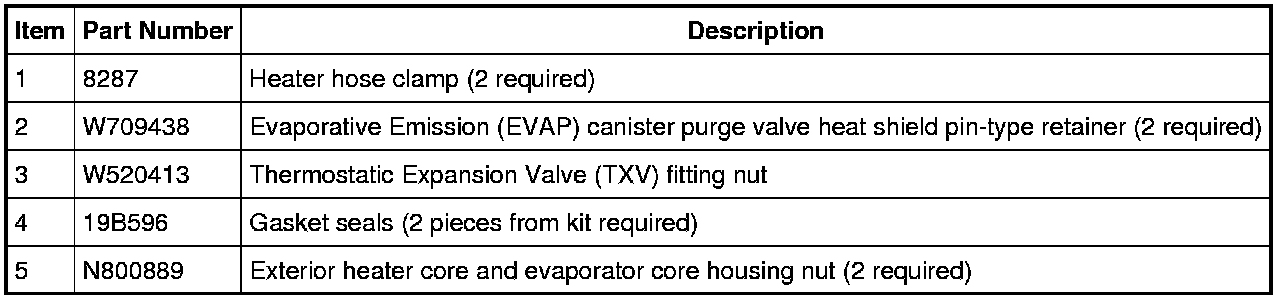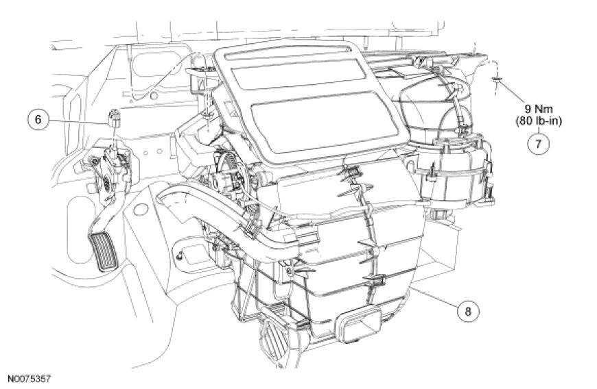 7. Remove the 2 interior heater core and evaporator core housing nuts.