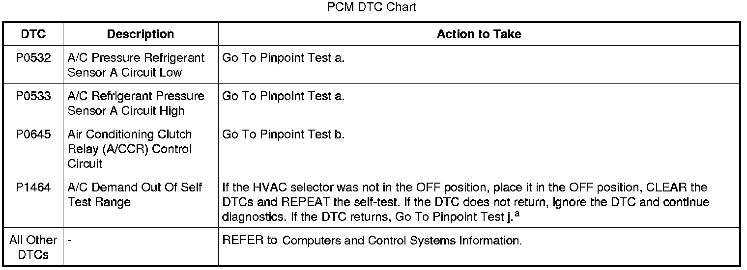 a PCM DTC P1464 will set if the function selector is in PANEL with A/C button pressed, DEFROST or MAX A/C mode when the on-demand self test is being run.