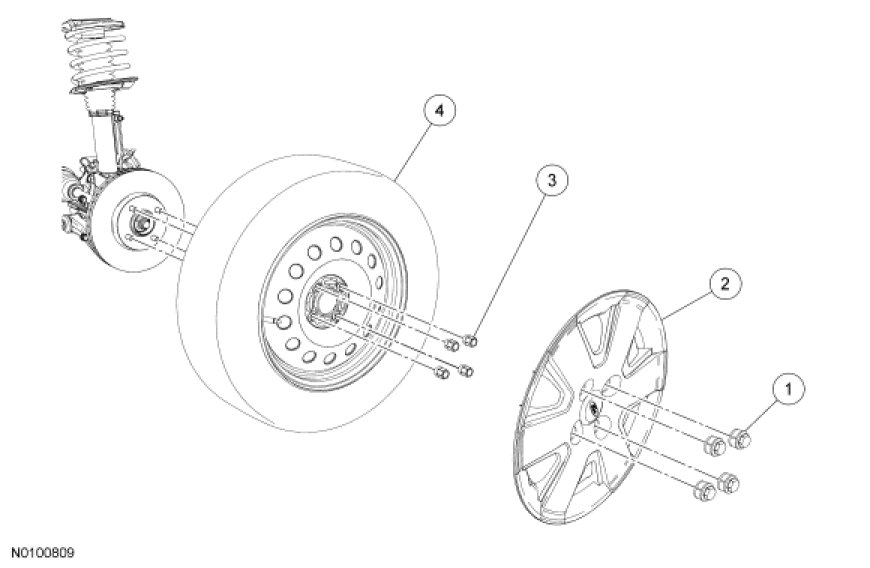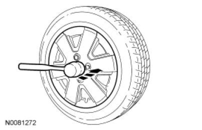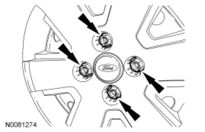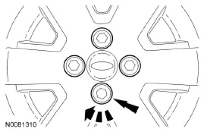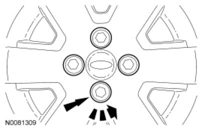 NOTICE: The wheel nuts must be removed prior to removing the wheel cover or damage to the wheel cover may occur.